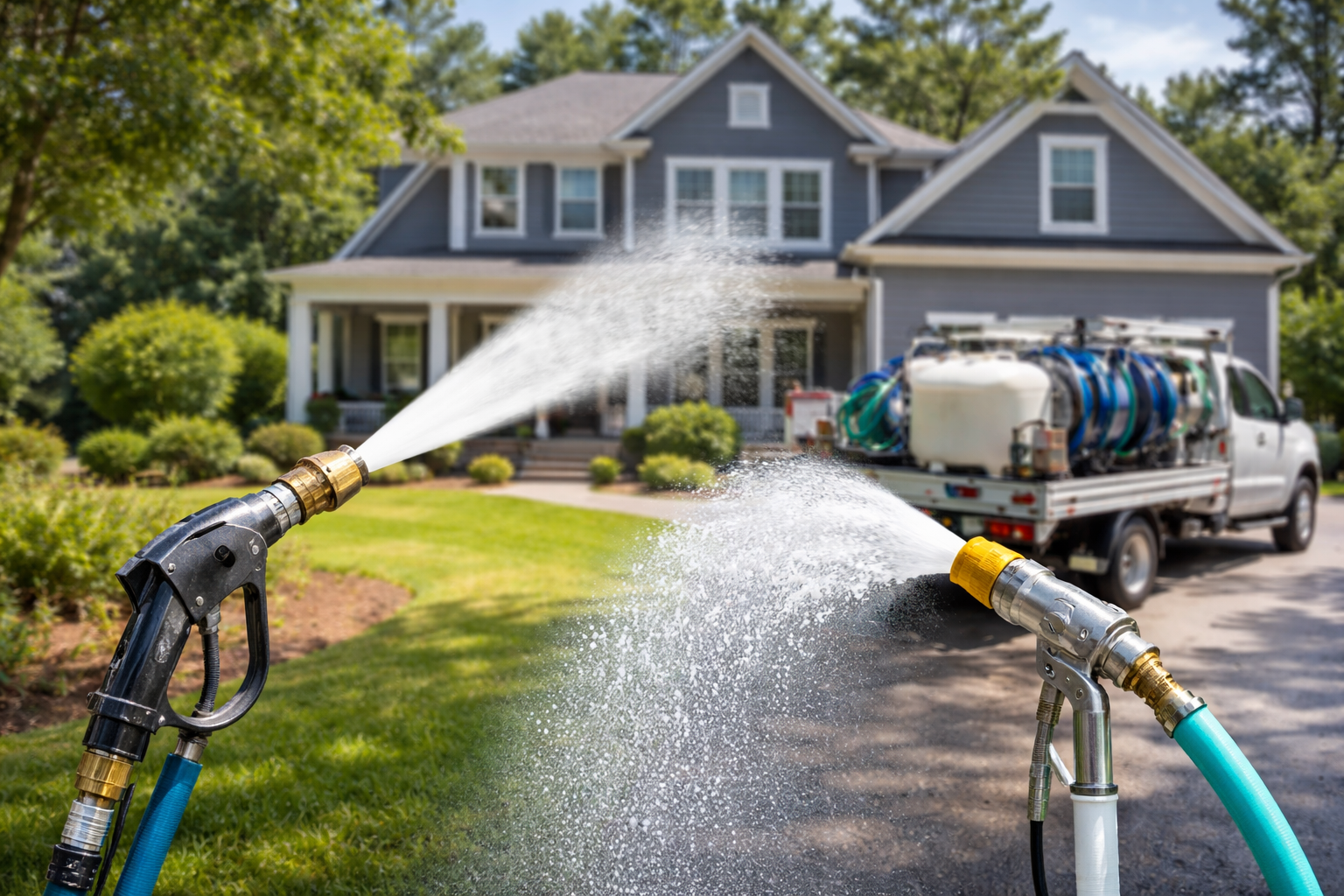 If you’re cleaning something more delicate or fighting mold and algae, soft washing is safer and more effective.