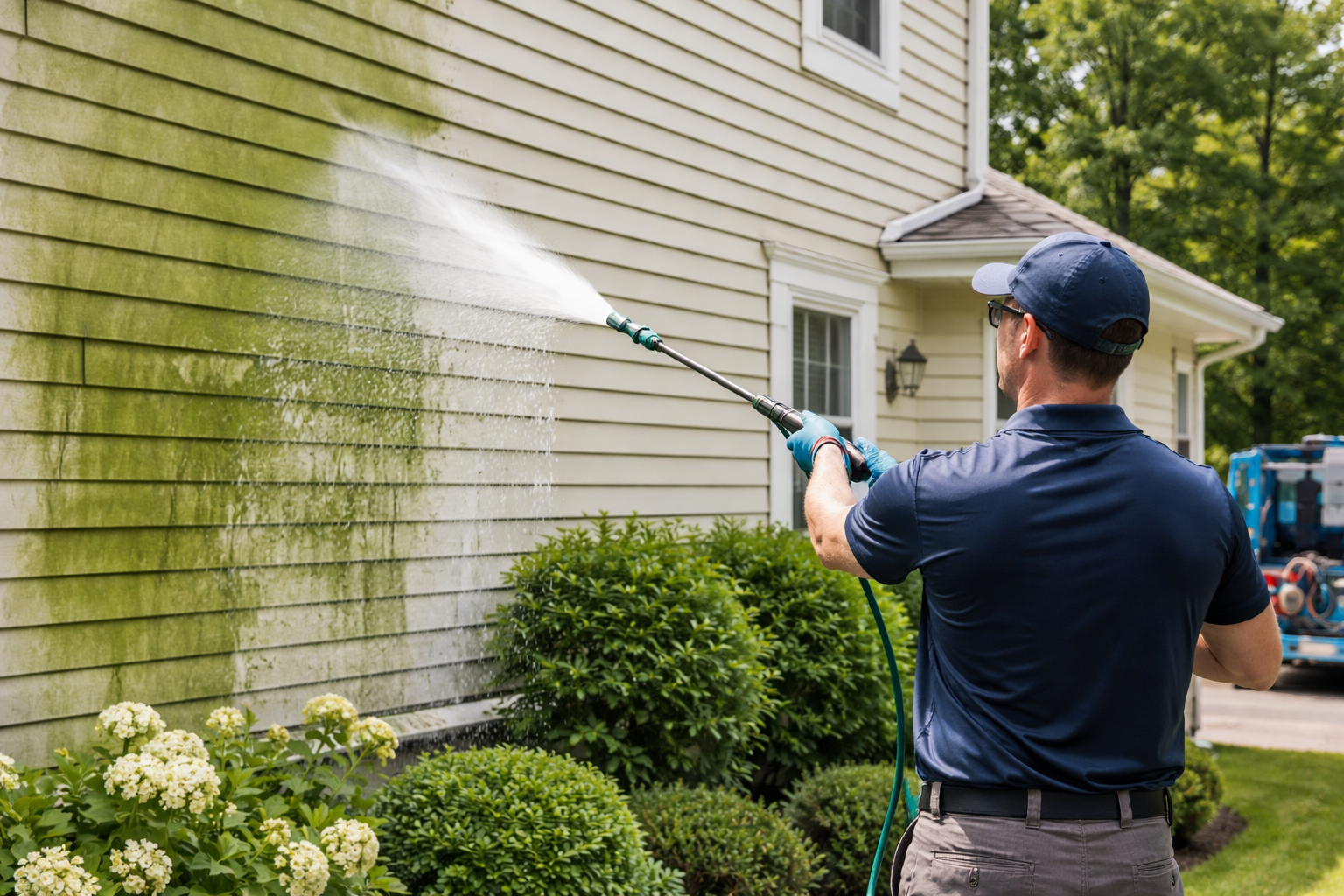 Professional soft washing siding removes algae safely and helps prevent it from coming back. If you’re seeing green algae on house siding and wondering how to remove algae from siding, professional soft washing is the safest solution.